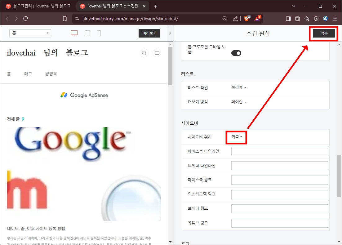 티스토리 블로그는 사이드바가 기본적으로 우측에 있는데, 이를 취향에 따라 좌측으로 옮길 수 있습니다. 아래에서 쉽고 간단하게 설명드리도록 하겠습니다.