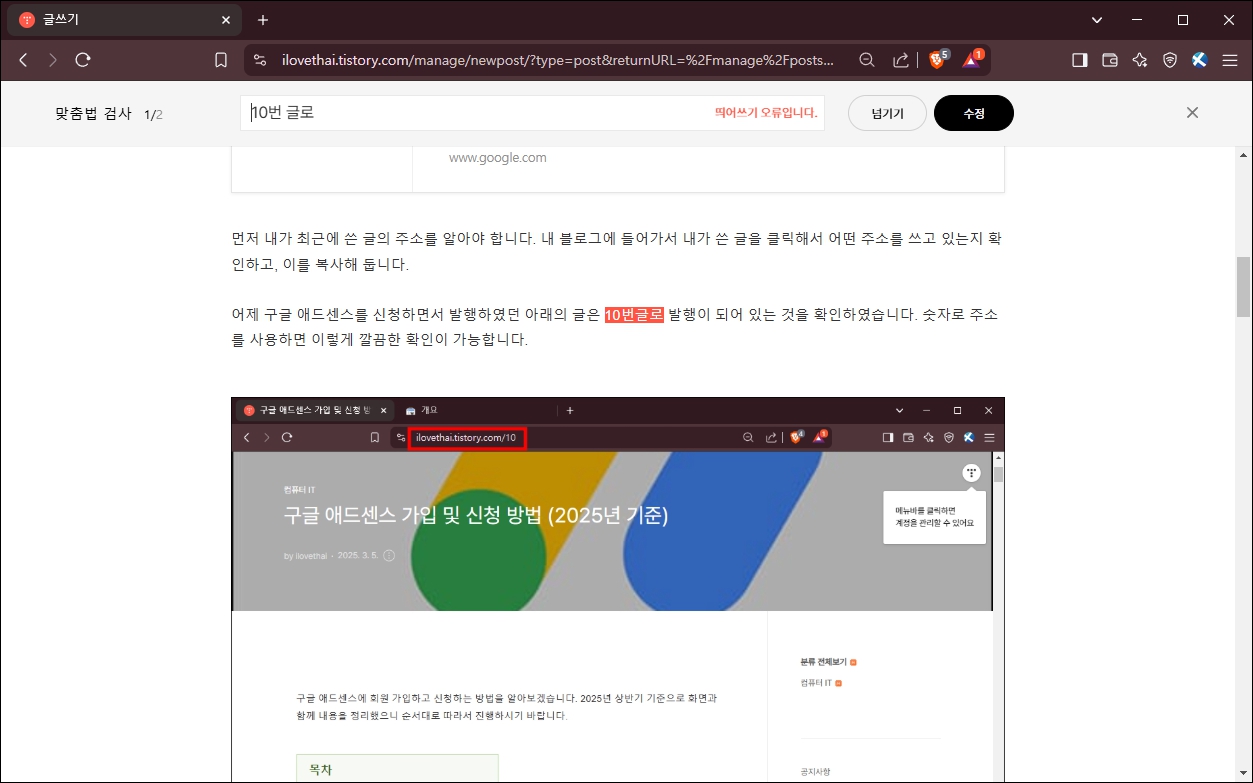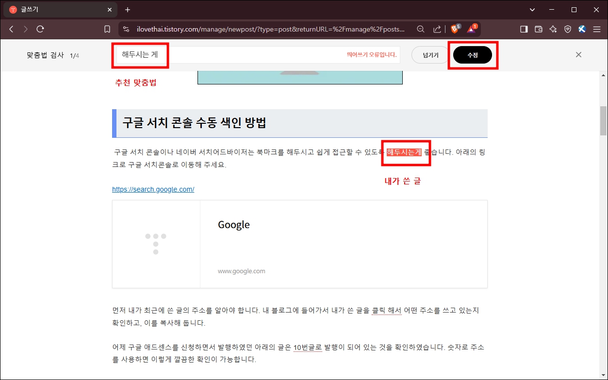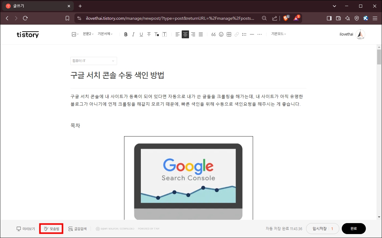 티스토리 블로그 맞춤법 검사 방법