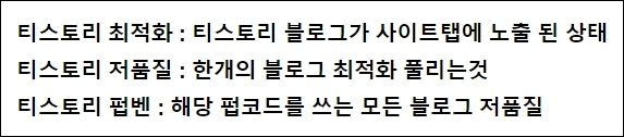 티스토리 블로그에는 쓰지 말아야 할 단어들이 있습니다. 아래의 단어들을 설명해야 하는데, 여기에 쓰지는 못하기 때문에 이미지로 설명을 드리도록 하겠습니다.