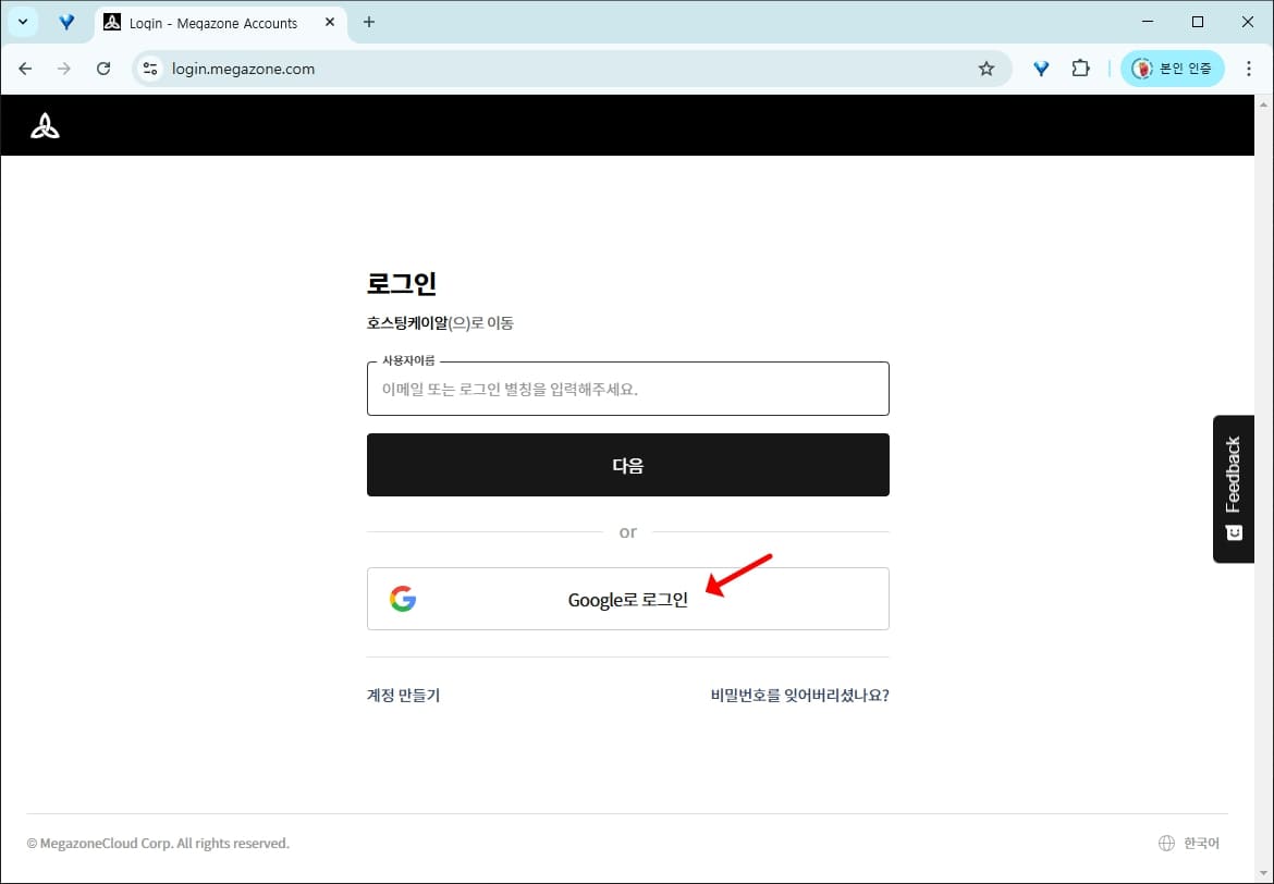 로그인 화면으로 넘어갑니다. 계정을 만들지 않아도 구글 이메일로 바로 로그인해서 사용할 수 있습니다.
