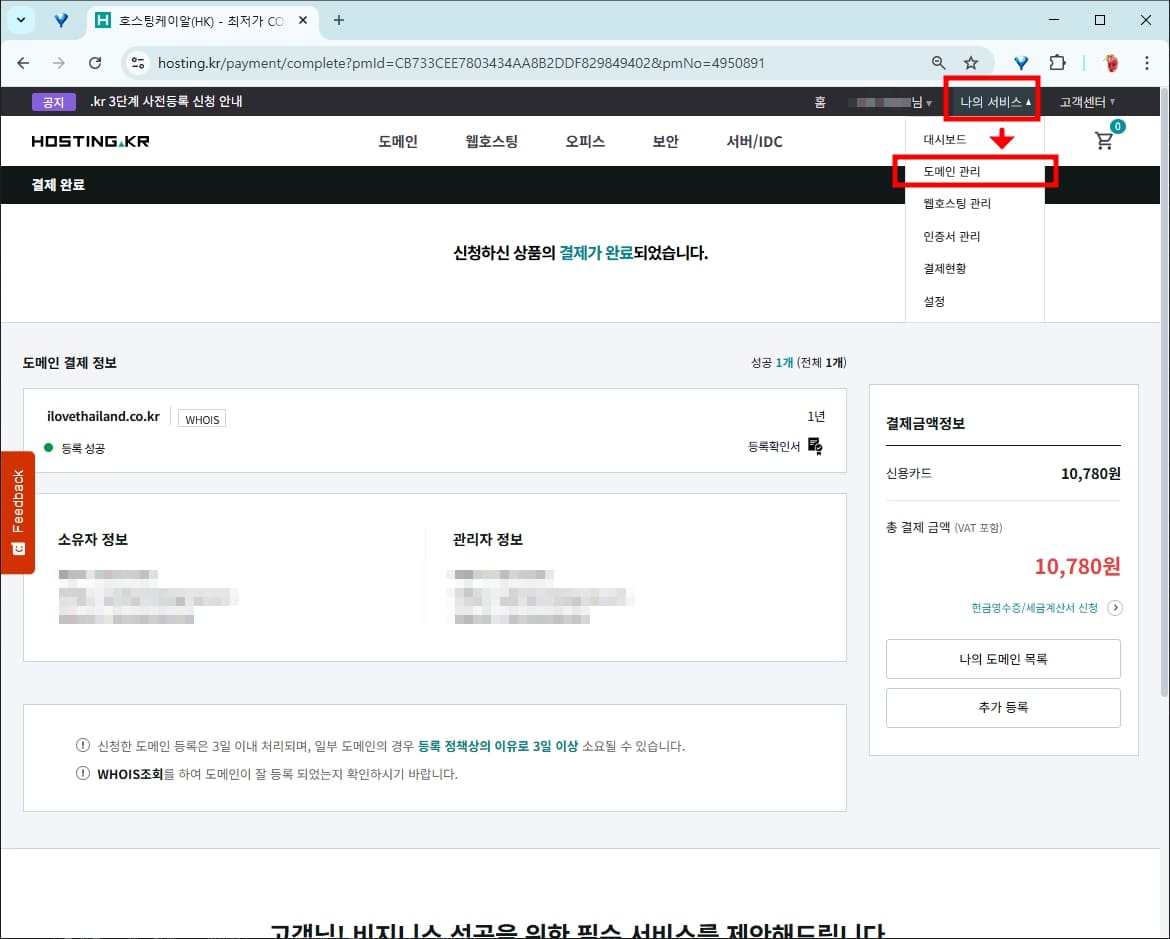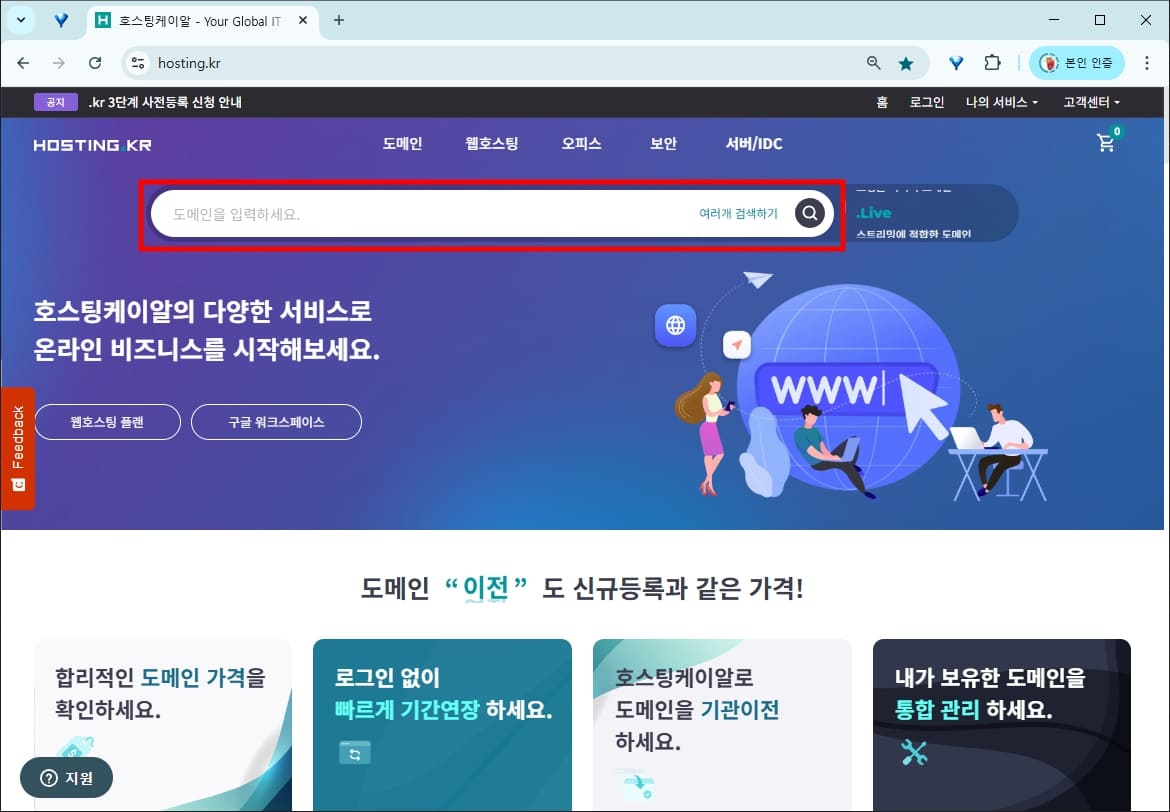 호스팅케이알에서 도메인 구매하기